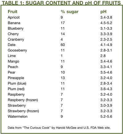 ตารางค่าน้ำตาลและค่า ph จากผลไม้ชนิดต่าง ๆ